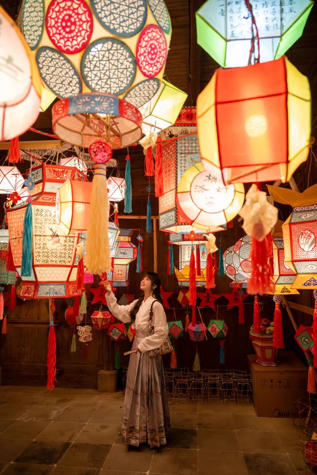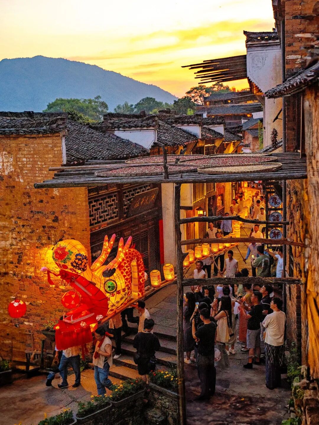 夜幕降臨,是篁嶺另一番精彩的開始。以非遺燈彩、龍燈為代表的夜經濟項目,點亮了古村的夜空,也點燃了游客的熱情。板龍燈是婺源的傳統民俗活動,也是江西省非物質文化遺產,人們以舞龍的方式來祈求平安和豐收。