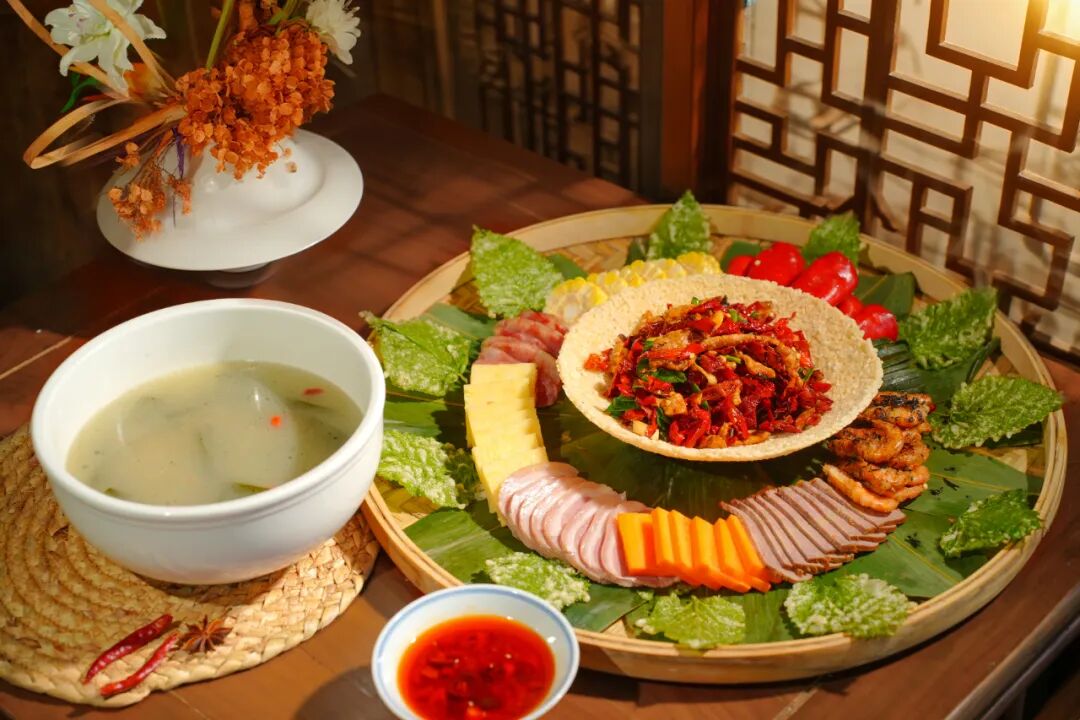 再赴一場曬秋宴,食材都是當地菜園里種的,裝在曬盤里端上來,贛味里帶著徽韻。咬一口青菜,鮮得能嘗到陽光的味道,這才是秋天該有的吃的。
