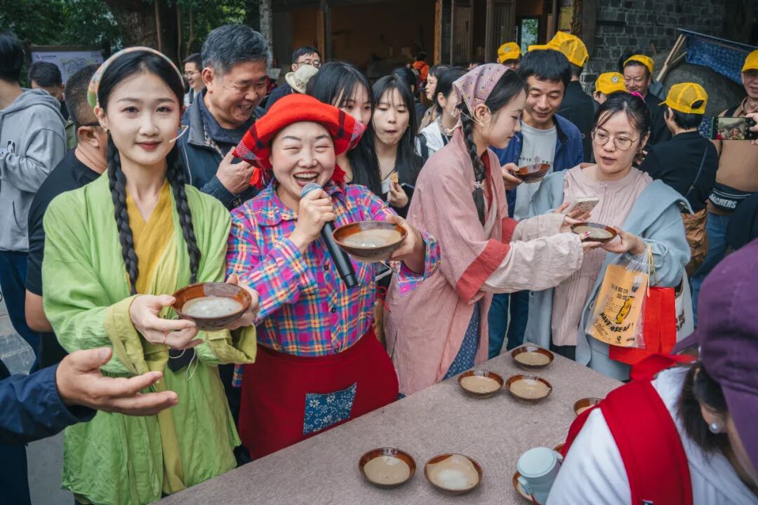 在篁嶺,秋色不只在眼里,更在體驗中。這里保留著許多充滿煙火氣的鄉愁民俗。才到村口,便有身著傳統服飾的村姑們,端著香甜的自家釀米酒,笑盈盈地攔在門前。下午,邂逅一場清雅的“茶舞迎賓”采茶姑娘們隨著悠揚的樂聲翩翩起舞