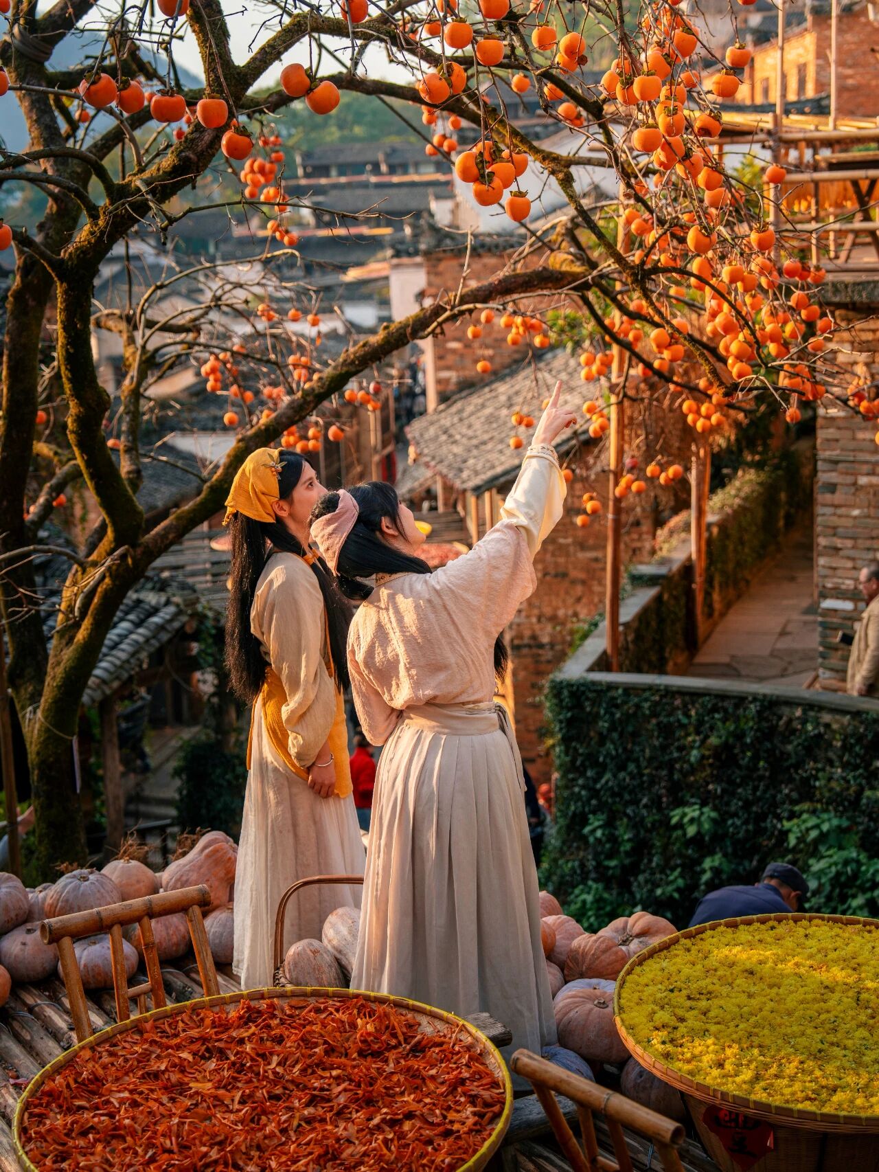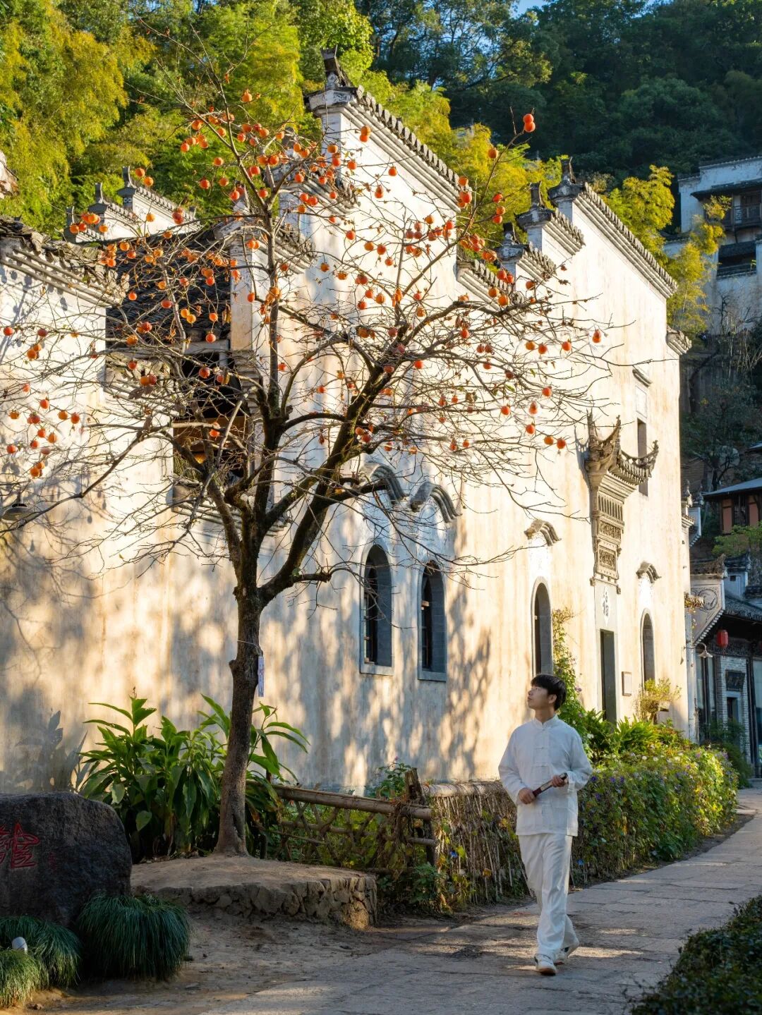 竹山書院的門口,有一棵秋意滿滿的柿子樹,暖秋的柿子最是多彩,橙的圓潤、紅的透亮,為古樸的書院增添了幾分秋日浪漫。