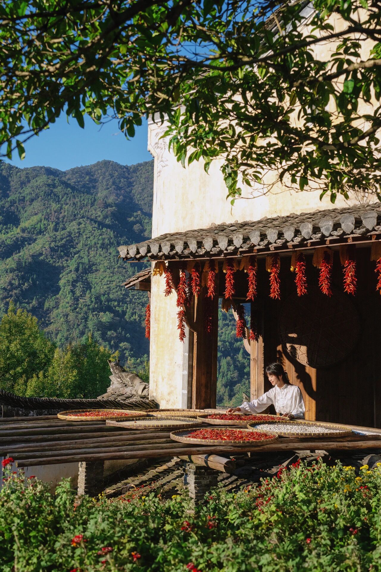 若說秋天有千萬種模樣,篁嶺的秋定是最濃烈的那一幅紅的辣椒、黃的玉米、橙的南瓜綴滿曬架,與黛瓦白墻相映,走在青石板路上,連風(fēng)都裹著豐收的暖意。